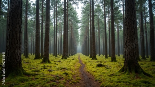 © GMeta, Obraz premium Serene Swedish pine forest with tall trees and mossy ground
