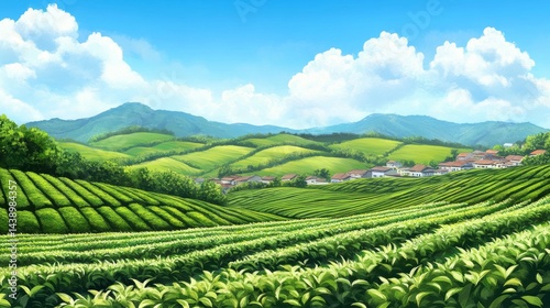 © madu, Obraz premium Serene Tea Plantation Landscape