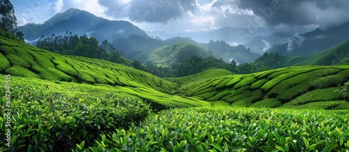 © Zie, Obraz premium Serene Tea Plantation Landscape