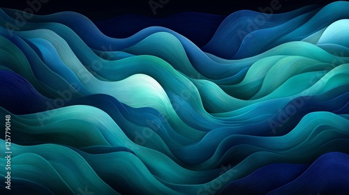 © heinng, Obraz premium Serene teal blue waves gently undulate creating a calming abstract design. AI Generated