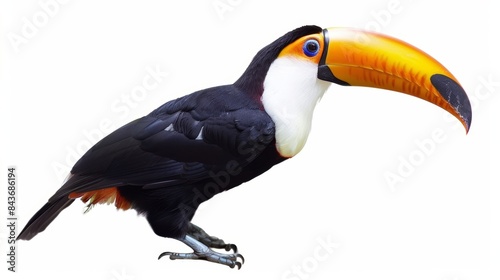 © Shozib, Naklejka premium Serene toco toucan displays a stunning array of vibrant colors against a pure white backdrop