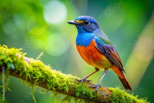 © Man888, Fototapeta premium Serene Tourterelle Perched on a Branch Amidst Lush Green Foliage in Soft Natural Light Environment