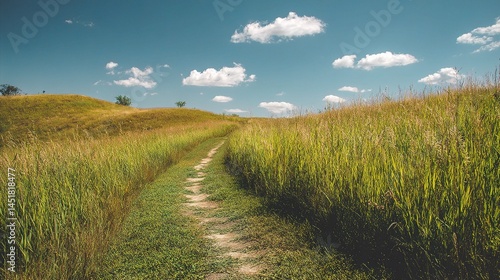 Obraz premium Serene Trail Through Lush Green Grass in Countryside Landscape