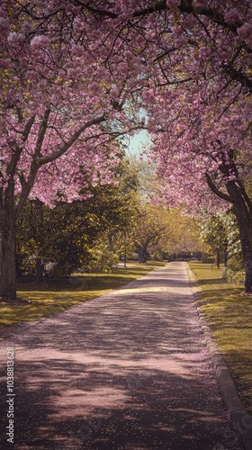 Naklejka premium Serene Tree-Lined Avenue in Spring Bloom