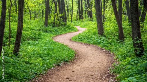 © MyStockz, Fototapeta premium Serene Tree-Lined Pathway Through Lush Green Forest Landscape