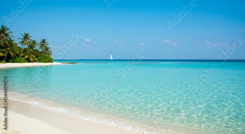 © Phung, Fototapeta premium Serene tropical beach glows under bright sunlight. AI Generated