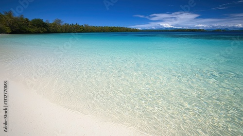 © abdul kahfi, Obraz premium Serene Tropical Beach Paradise: Crystal Clear Water and Pristine White Sand