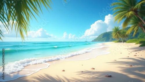 Fototapeta premium Serene Tropical Beach Scene Perfect for Travel Vacation and Summer Holiday...