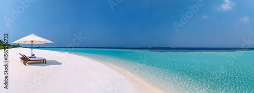 © Rayyan, Fototapeta premium Serene Tropical Beach Scene with White Sand and Crystal Clear Water