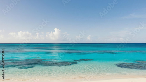 © Star, Obraz premium serene tropical beach with crystal clear turquoise water, white sand, and cloudless blue sky