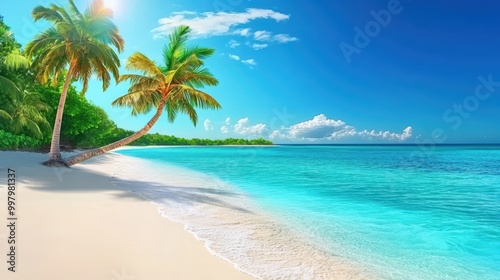 © AssanAI.Studio, Obraz premium Serene Tropical Beach with Crystal Clear Waters