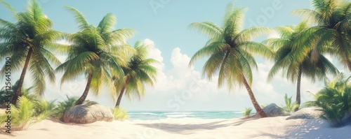 Obraz premium Serene tropical beach with palm trees and clear blue sky