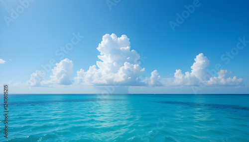 Obraz premium Serene Turquoise Ocean Meets a Cloud-Dappled Sky