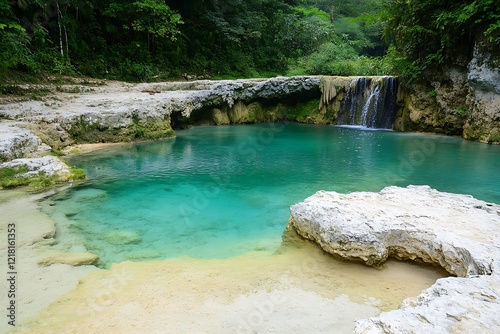 © masud, Naklejka premium Serene Turquoise Waterfall Pool in Nature