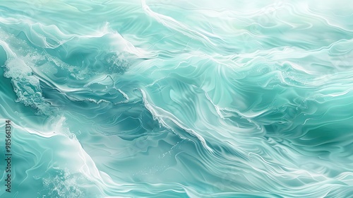 Obraz premium Serene turquoise waves and gentle foam accents with a gradient backdrop...