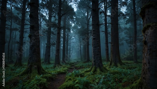 Obraz premium Serene twilight in an ancient enchanted forest.