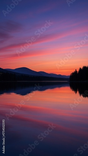 Obraz premium Serene twilight lake reflection.