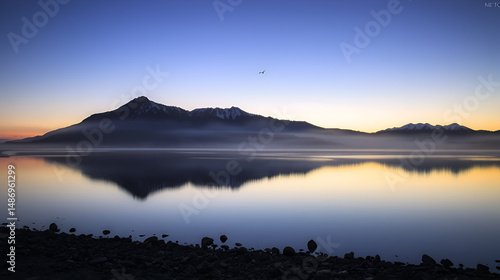 Obraz premium Serene Twilight: Mountain Lake Reflection