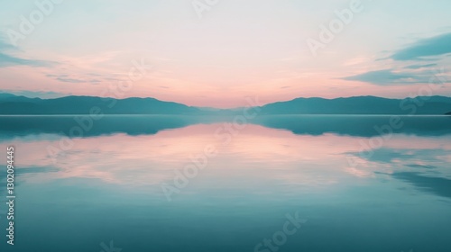 Fototapeta premium Serene Twilight Reflection on Calm Lake Waterscape