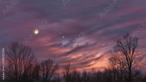 Obraz premium Serene Twilight Skies with Celestial Bodies: Moon and Planets Aligned Over...