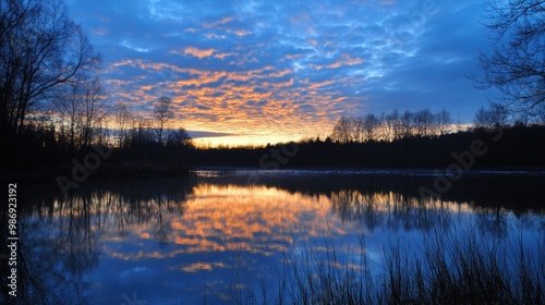 © PalaG, Fototapeta premium Serene Twilight Sky with Fading Light Reflections - A Peaceful Dusk Scene in Nature