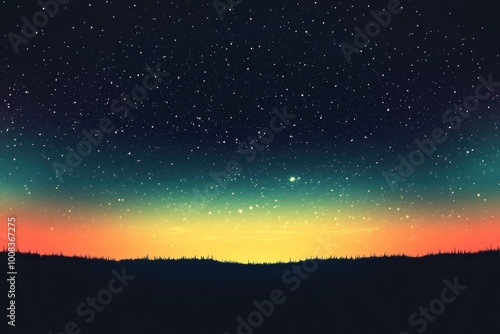 © Viam, Naklejka premium Serene twilight sky with starry night silhouette