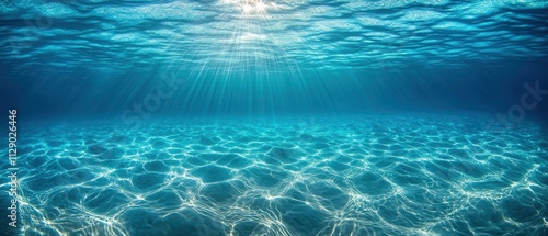 Fototapeta premium Serene undersea scene with sunlight shimmering through the blue ocean
