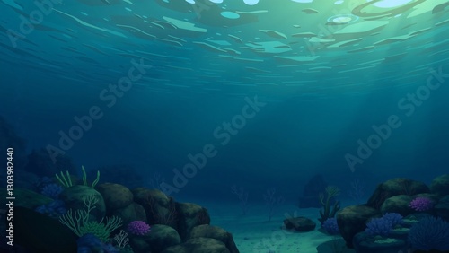 Fototapeta premium Serene Underwater Scene Sunlit Ocean Floor with Rocks and Coral