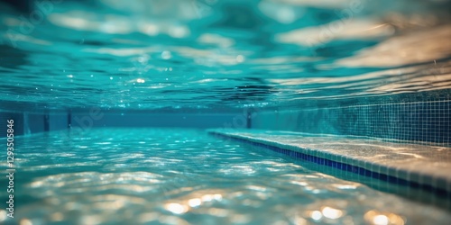 Obraz premium Serene Underwater View of Swimming Pool with Clear Water and Soft Reflections...