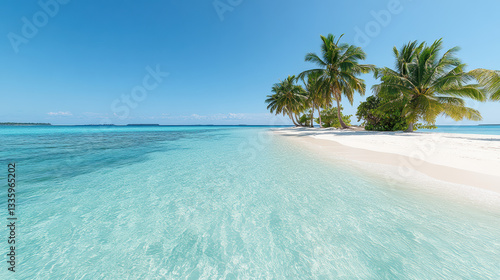 Fototapeta premium serene untouched island with coconut trees swaying in breeze