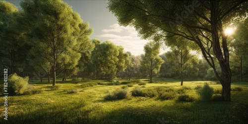 Obraz premium Serene Urban Oasis: Lush Green Park Landscape Generative AI