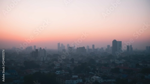 © Kitta Studio, Fototapeta premium Serene Urban Sunrise Over Cityscape with Soft Pastel Hues