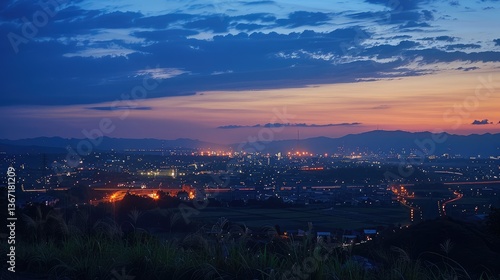 © raining, Fototapeta premium Serene Urban Twilight: A Breathtaking Cityscape at Dusk