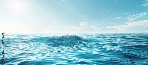 Fototapeta premium Serene view of calm ocean waves in a clear blue sea with a tranquil blue water background and ample copy space image