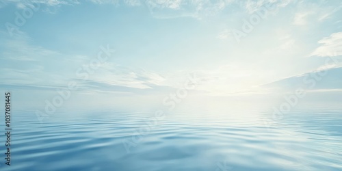 © kiimoshi, Obraz premium Serene view of calm water reflecting a clear blue sky with gentle waves.