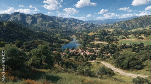 Fototapeta premium Serene Village in Mountain Valley