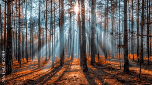 © dongwei, Obraz premium Serene Virtual Meeting Room Surrounded by Trees and Gentle Sunlight in Forest