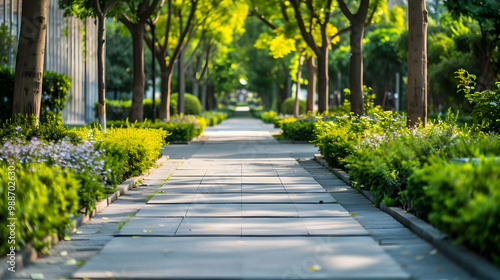 Fototapeta premium Serene Walkway Through a Lush Urban Park