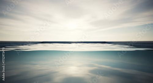 Fototapeta premium Serene Water Reflection with Subtle Sky Blur Capturing a Peaceful Moment of...