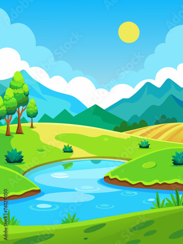 © Design Adelsa, Obraz premium Serene water vector landscape background with calming blue hues and a tranquil atmosphere.