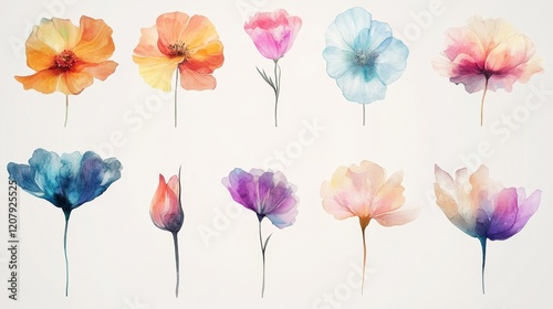 © Thavesak, Obraz premium Serene Watercolor Floral Artistry with Vibrant Petals and Organic Flow