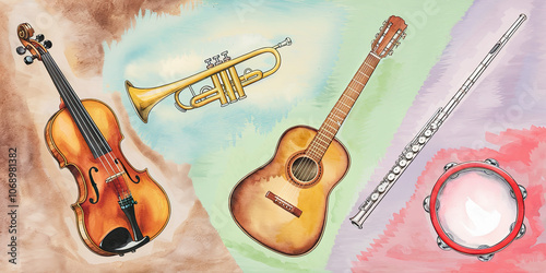 Naklejka premium "Serene Watercolor Landscape of a Sunset Over Mountains - Tranquil Nature Art"