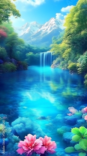 © Doni, Fototapeta premium Serene Waterfall Canyon Reflections.