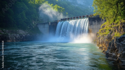 Fototapeta premium Serene Waterfall Cascading into Tranquil River