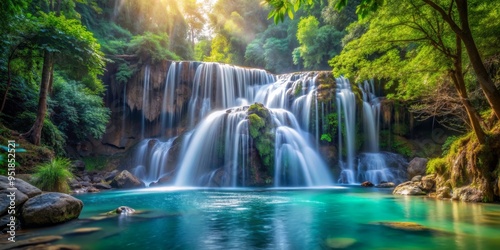 Obraz premium Serene Waterfall Cascading Through Lush Jungle, Long Exposure Photography,...