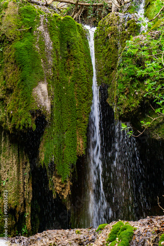 Obraz premium Serene waterfall cascading through mossy cliffs at Beli Izvorac, Serbia