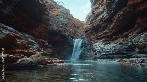 Naklejka premium Serene Waterfall in a Rocky Canyon Landscape