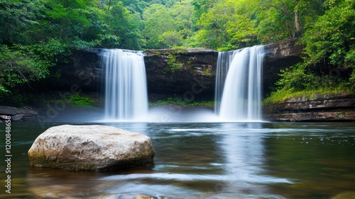© Munanto, Obraz premium Serene Waterfall in Lush Forest
