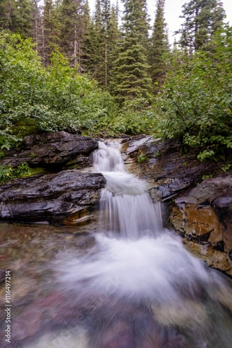 © Wirestock, Obraz premium Serene waterfall in lush forest setting.