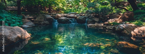 © B8stock, Fototapeta premium Serene Waterfall in Lush Green Forest